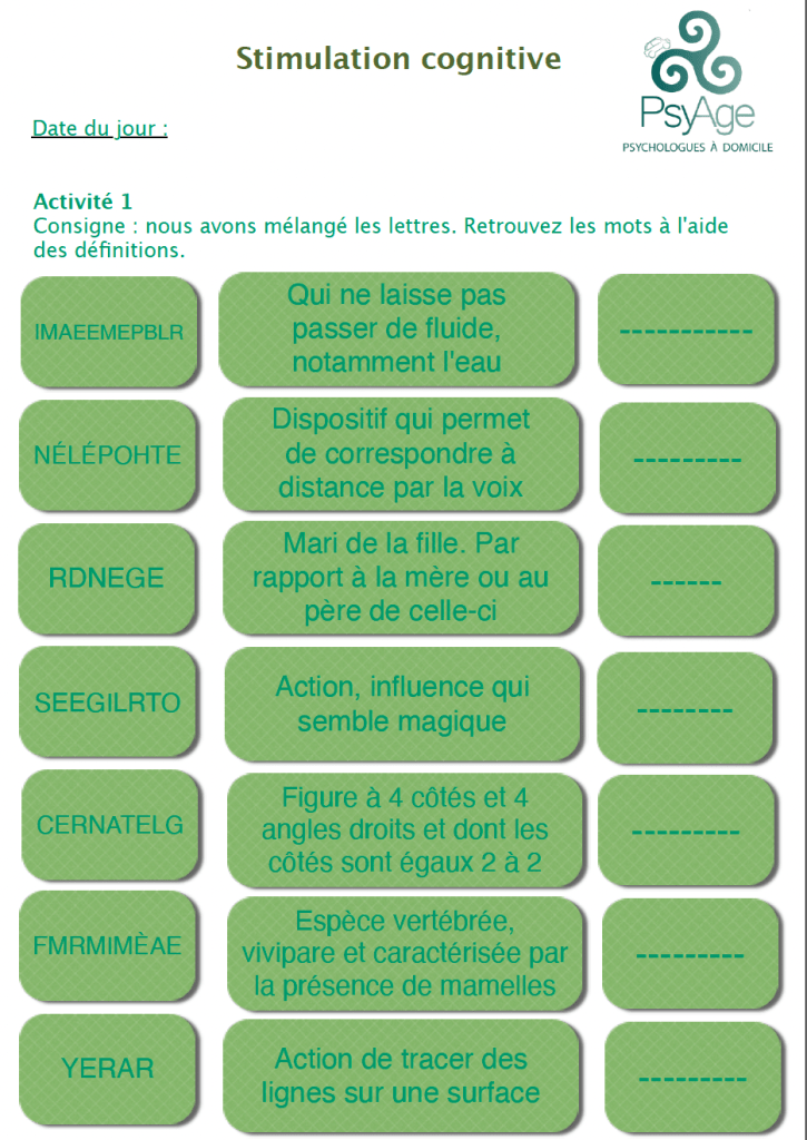 Fiches de stimulation cognitive
